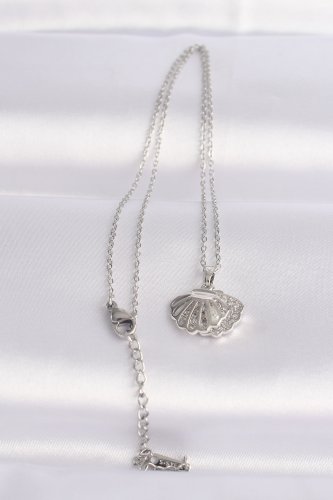 316L Çelik Zincir Gümüş Renk Zirkon Taşlı İnci Detay İstiridye Kolye